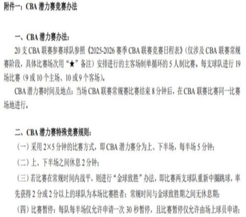 此前,CBA推出新规,各队新赛季将与其他19个对手在常规赛结束后8分钟额外进行一场潜力赛。此事在当时引起了热议,觉得这样的鸡肋比赛毫无用处,更多是联赛为了去应付赞助商(因为新赛季CBA联赛每节12分钟缩减为10分钟)。