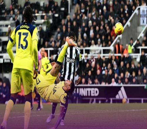 第78分钟,库杜斯右路精准传中,罗梅罗摆脱防守球员俯冲头球攻门,用前锋般的嗅觉扳平比分;补时阶段的倒钩更是惊为天人,皮球落地反弹入网的瞬间,不仅击碎了纽卡主场全取三分的希望,更成为本赛季英超最佳进球的有力竞争者。